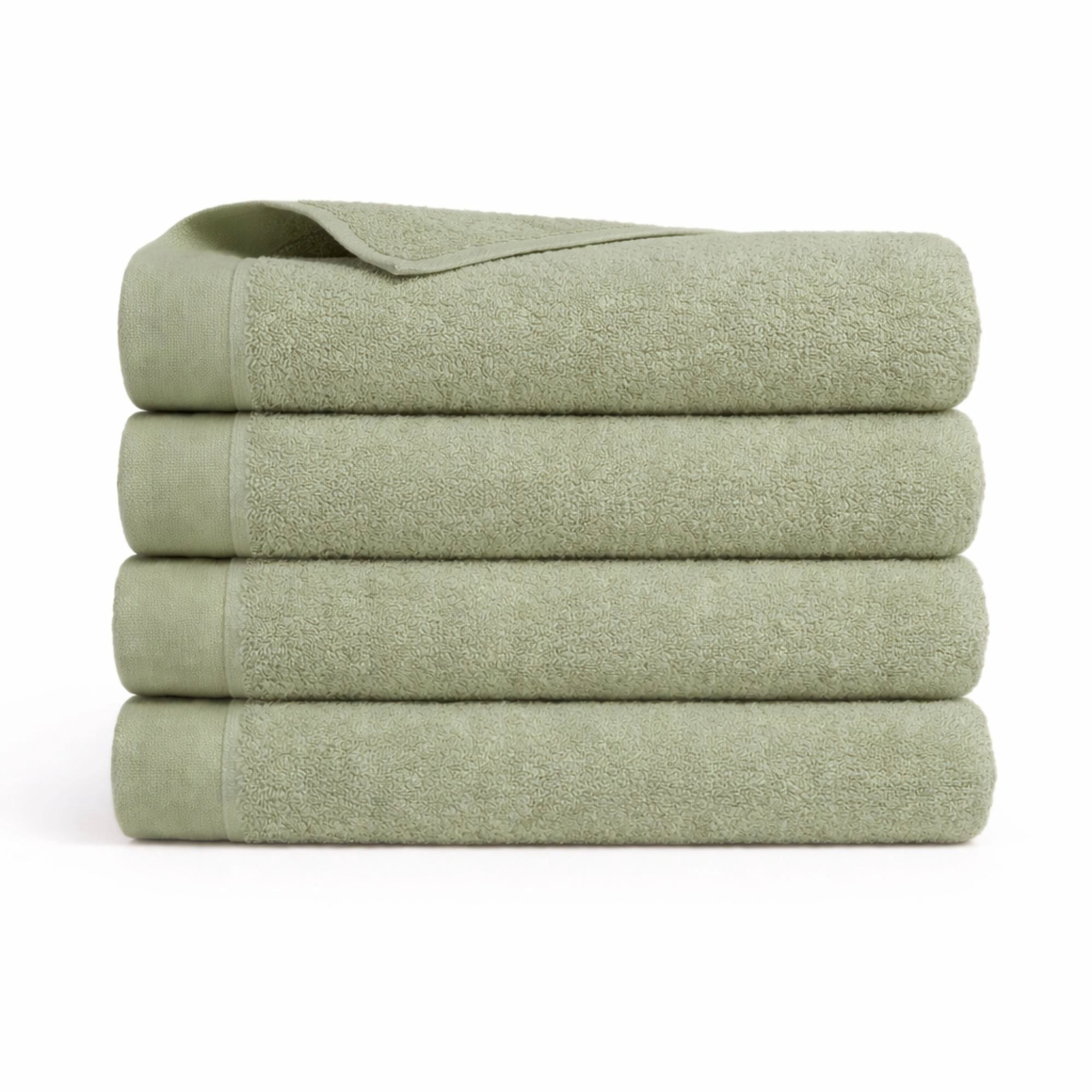 Bomulds Håndklæde - 100% Bomuld - Badehåndklæde 70x140 Cm - Valmue - Lysegrøn - Byborg