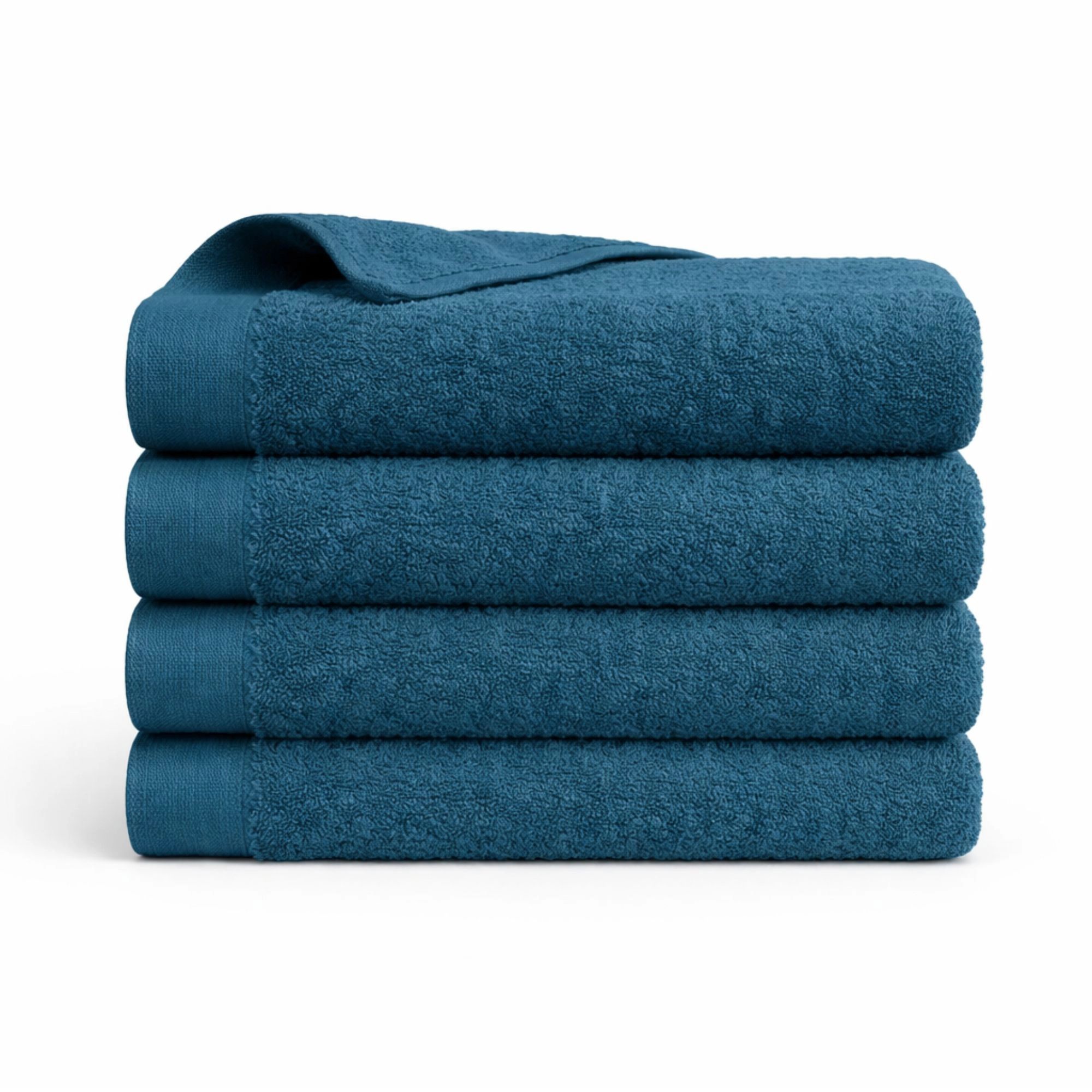 Bomulds Håndklæde - 100% Bomuld - Badehåndklæde 70x140 Cm - Valmue - Mørkeblå - Byborg