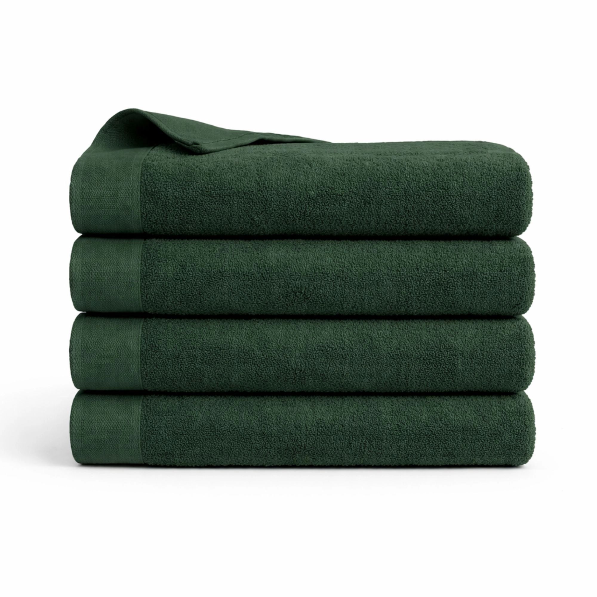 Bomulds Håndklæde - 100% Bomuld - Badehåndklæde 70x140 Cm - Valmue - Mørkegrøn - Byborg